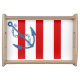 Serving tray shown in natural with a cute nautical anchor and stripes print. Customize this tray or buy as is.