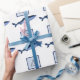 Nautical Sharks Navy Blue White Wrapping Paper