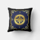 Nautical ship compass silhouette/gold/navy/blk throw pillow