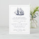 Impress your guests with this elegant double sided wedding invitation by JessicaAmber. This classic card features a vintage illustration of a frigate sailing ship, which you can replace with an image of the destination where you will be married (transparent or white background preferred). Elegant dark blue lettering displays the bride and groom names, and details of the wedding, including the location, date and time.