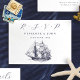 This nautical wedding RSVP card features a vintage illustration of a frigate sailing ship, which you can replace with an image of your wedding venue (transparent or white background preferred). Elegant dark blue lettering lays out the title, whether the guest will accept or decline, and the date to respond by. There's also a line for you to hand-write the guest's ID number (which is helpful when keeping track of many RSVPs).