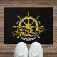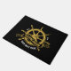 This stylish nautical Black and Gold doormat features a beautifully rendered ship's wheel, a timeless symbol of sailing and adventure. Customize it with your boat's name and establishment date to create a unique and personalized welcome for guests.