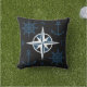 Nautical Ships Helm Compass Anchors Navy Black Outdoor Pillow