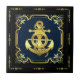Nautical ship's wheel/anchor navy-blue/gold ceramic tile