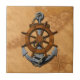 Classic vintage ship's helm and anchor over a vintage style nautical map of the Florida Keys.