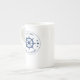 A custom nautical ships wheel, boat helm with stars and your Personalized Captain rank or other title, Your name or boat name in Navy Blue on a stylish White bone china coffee, tea mug.