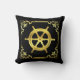 Nautical ship's wheel silhouette/gold/black square throw pillow