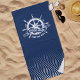 Nautical Ship's Wheel Welcome Aboard Navy Blue Beach Towel