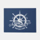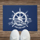 This stylish nautical Navy Blue doormat features a beautifully rendered ship's wheel, a timeless symbol of sailing and adventure. Customize it with your boat's name and establishment date to create a unique and personalized welcome for guests.