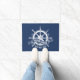Nautical Ship's Wheel Welcome Aboard Navy Blue Doormat