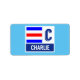Nautical Signal Code Flag C "Charlie" Labels. Square marine signal flag sticker "Charlie" - letter C with blue, white and red color bars maritime label sheet maritime stickers.