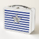 Nautical Silver Star Design on Stripes Metal Lunch Box