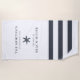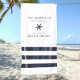 Nautical beach towel features a starfish and stripes design. Personalize the custom text with a family last name and beach house (or other title) with the year established and location. Hale navy blue and white color scheme.
