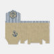 Navy blue and white stripes with nautical anchor design over the rustic look of burlap to compliment our invitation set. Personalize with text as preferred.