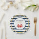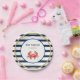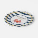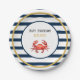 Celebrate your nautical themed baby shower with these fun, striped baby shower plates and other accessories featuring modern navy and gold design, watercolor crab, and personalized text. Find matching products in my shop.