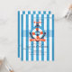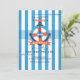 A sporty, nautical design with light blue and white stripes featuring an anchor and a life preserver. <a href='http://www.freepik.com/free-vector/anchor-with-life-preserver-background_860673.htm'>Designed by Freepik</a>. The card is easy to customize with your wording, font, font color, paper shape options and choice of six paper types.<br/><br/>Not exactly what you're looking for? All our products can be custom designed to meet your needs at no extra charge.<br/><br/>Simply contact us at heartfelthelper@gmail.com<br/><br/>Coordinating products available: Just ask us!