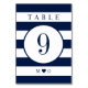 Nautical stripes themed table number card for your next wedding event.