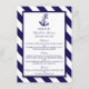 The design features a whimsical navy blue anchor motif on a nautical navy and white striped background.