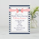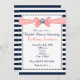 Nautical Stripes Navy Blue Peach Bow Invitations