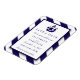 The design features a whimsical navy blue ship motif on a nautical navy and white striped background.