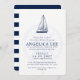 Whether it's a retirement party or retirement dinner send that hard worker off in style with these unique nautical themed invitations cards. These invitations feature a boat symbolizing the person making a new journey in the next part of their life. It also features a compass rose in the background and a striped navy and white pattern on the reverse side to complete the full nautical look. All elements of the invitation are adjustable simply use the customization function. Have fun creating and making it special.