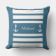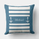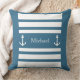 Nautical Teal Blue White Stripes Anchor Name Throw Pillow