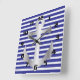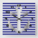 Nautical Theme Blue Stripes Pattern Anchor Square Wall Clock