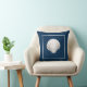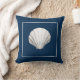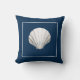 Nautical themed throw pillow with white seashell on navy blue background See all the coordinating pillow designs at Sandy Feet Studios.