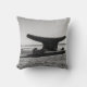 Pillow, nautical theme photography, black and white, a boat cleat. Title: 'The Attachment'. Taken in Quebec, Canada, in Saint-Sulpice.