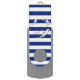 A modern silver chrome like sharks and diver applique on a navy blue stripes decor for a fine custom gift.