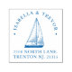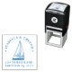 Classy yet modern nautical themed ink stamps. The stamps feature a nautical sailboat illustration made in a vintage style surrounded by the name of the bride and groom. Underneath this is a mailing address. All elements of this item are adjustable by using the customization function.