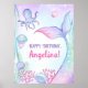 Nautical themed birthday Posters featuring illustrations of the seabed, cute octopus, adorable jellyfish and a magical mermaid tail.