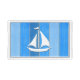 Nautical themed design with sailing boat decoration on striped blue and gray wooden background. Please note this is not made of wood, it is a wood graphic print.