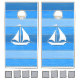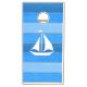 Nautical themed design with sailing boat decoration on striped blue and gray wooden background. Please note this is not made of wood, it is a wood graphic print.