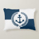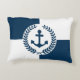 Nautical themed design with anchor and laurel wreath decoration over blue and white geometric background
