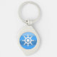 Nautical themed design with sailing wheel decoration on striped blue and gray wooden background. Please note this is not made of wood, it is a wood graphic print.