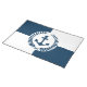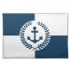 Nautical themed design with anchor and laurel wreath decoration over blue and white geometric background