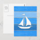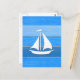 Nautical themed design with sailing boat decoration on striped blue and gray wooden background. Please note this is not made of wood, it is a wood graphic print.