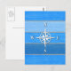 Nautical themed design with compass decoration on striped blue and gray wooden background. Please note this is not made of wood, it is a wood graphic print.