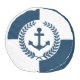 Nautical themed design with anchor and laurel wreath decoration over blue and white geometric background