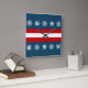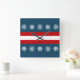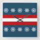 Nautical themed design with red and white stripes, sailing wheel and compass decoration
