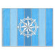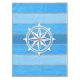 Nautical themed design with compass decoration on striped blue and gray wooden background. Please note this is not made of wood, it is a wood graphic print.