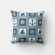 Nautical themed design with sailing wheel, sailing boat,compass and anchor decoration in white and blue striped squares