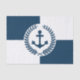 Nautical themed design with anchor and laurel wreath decoration over blue and white geometric background