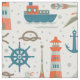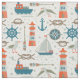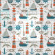 Red, teal, gray nautical graphics on white background, seamless repeat pattern