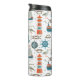Red, teal, gray nautical graphics on white background, seamless repeat pattern