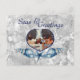Nautical-themed Seas & Greetings Holiday Photo Postcard. Featuring a heart-shaped photo with gray silver background and blue seashells