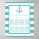 Nautical Turquoise Stripe Anchor Wedding Seating Poster
