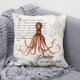 Nautical Vintage Red Octopus Illustration Throw Pillow