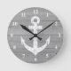 Nautical wall clock | boat anchor and wood panels. Gray and white design with wooden boards and weather navy ship anchor. Maritime gift idea. Beach theme room decor / house decoration.